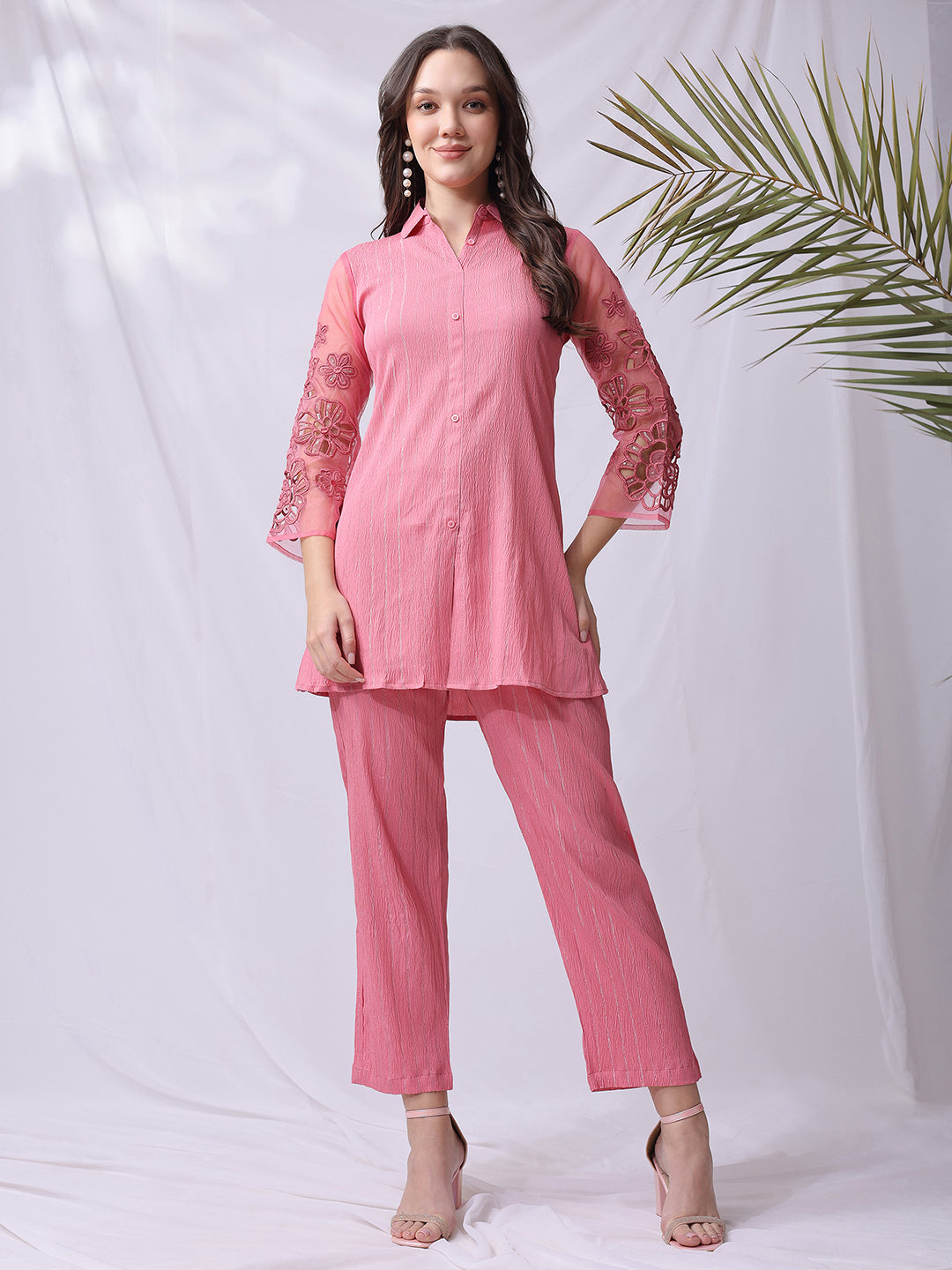Elevate your ethnic wardrobe with this exquisite Designer Cutwork Cream Co-ord Set in soft pink. Featuring intricate cutwork detailing that showcases traditional craftsmanship, this coordinated ensemble combines timeless elegance with contemporary styling. The cream base with pink accents creates a versatile palette perfect for festive occasions, celebrations, or refined everyday wear. The coordinated cut ensures a polished, put-together look without the styling effort. Ideal for those who appreciate artisanal design and quality ethnic fashion.