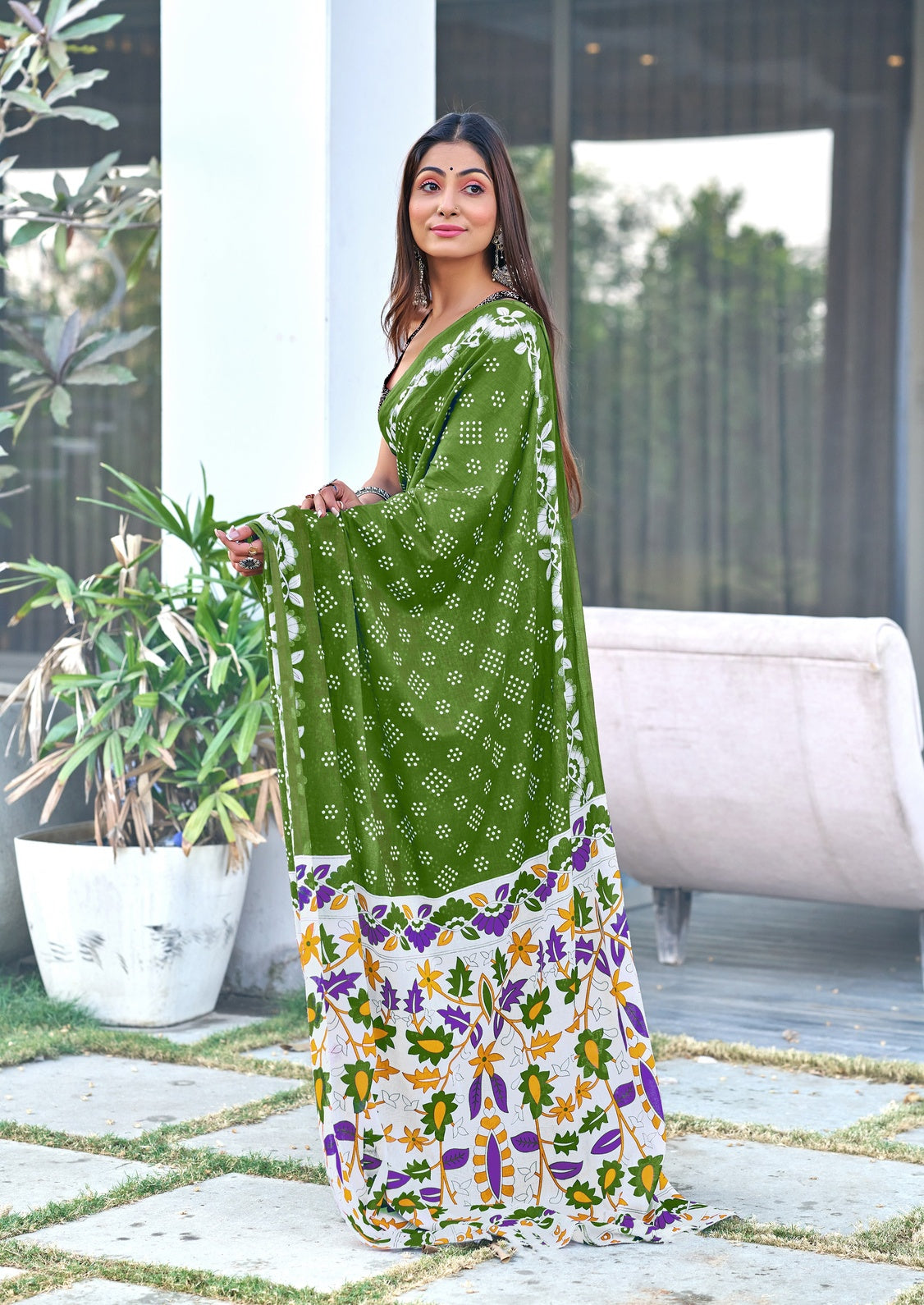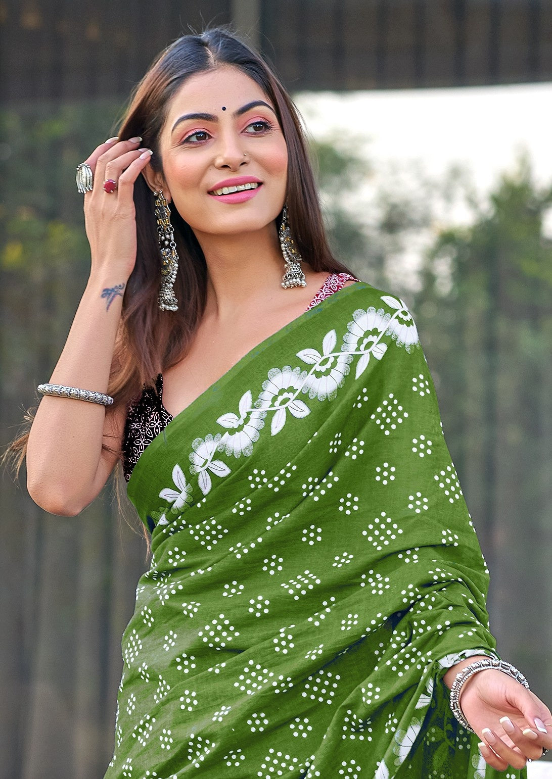 Hand Block Print Pure Mal Cotton Fabric in Elegant Green