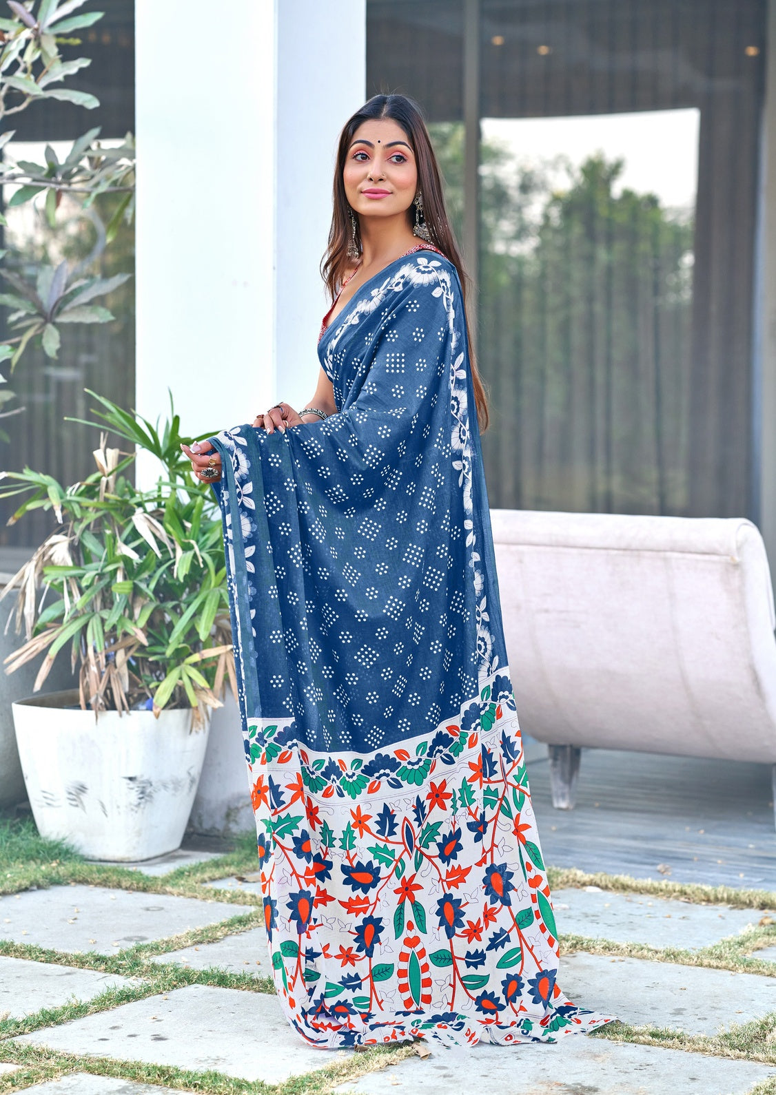 Hand Block Print Pure Mal Cotton Fabric in Elegant Blue Crafted from pure Mal cotton, this fabric showcases authentic hand block printing that brings traditional artistry to contemporary design. The breathable cotton weave ensures comfort and durability, making it ideal for garments, home décor, and craft projects. Each piece displays the distinctive character of hand-printed textiles, with subtle variations that reflect the artisan's skill. The elegant blue palette offers versatility for both classic and modern applications. Perfect for those seeking quality natural fiber with genuine handcrafted appeal.