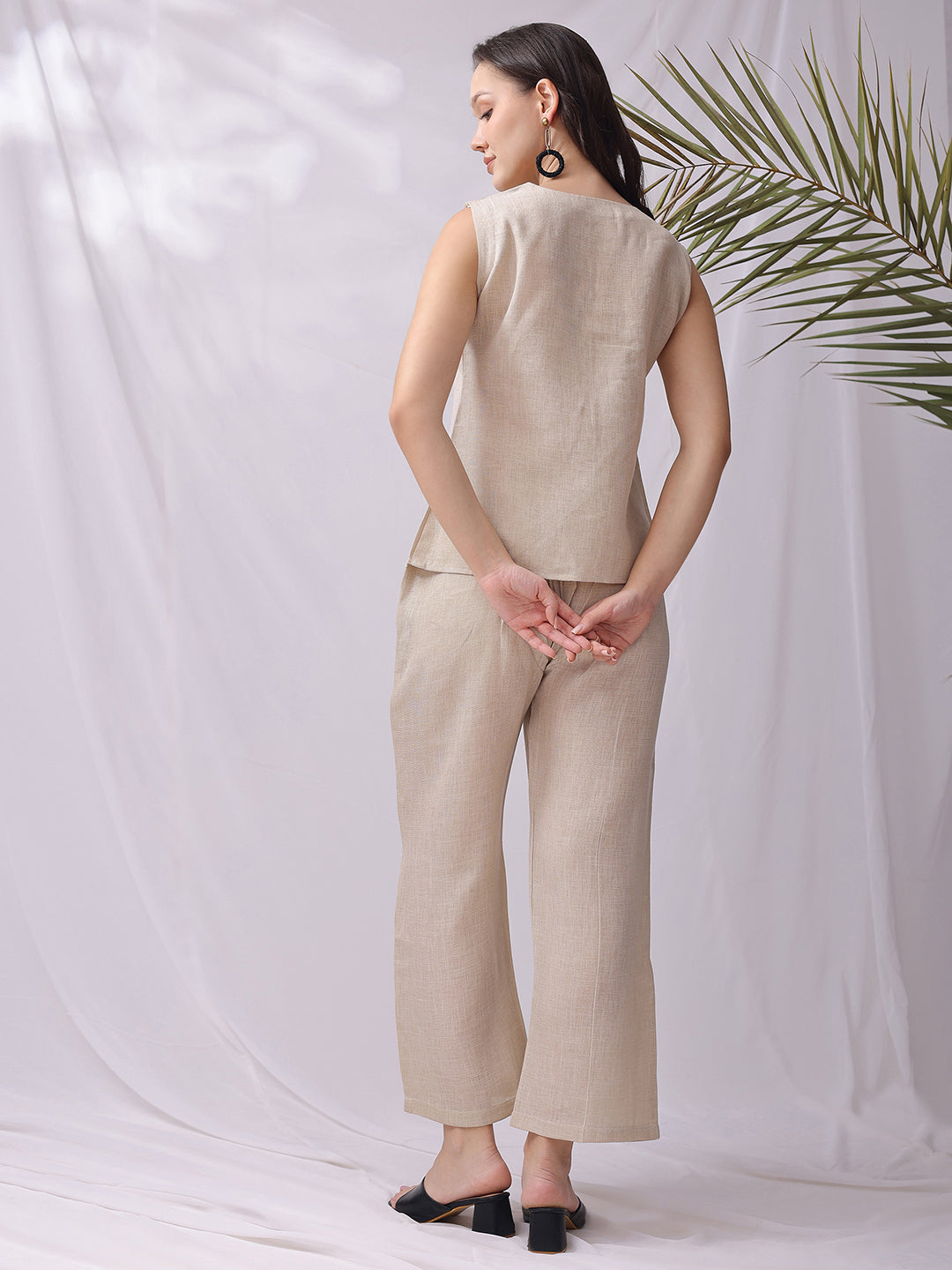 Elevate your ethnic wardrobe with this striking Evil Eye Linen Co-ord Set, a contemporary take on traditional aesthetics. Crafted from breathable linen, this two-piece ensemble features the protective symbolism of the evil eye motif, seamlessly blending cultural heritage with modern design. The coordinated top and bottom offer versatile styling for both casual gatherings and festive occasions. Perfect for those seeking meaningful pieces that celebrate ethnic craftsmanship while maintaining everyday wearability.